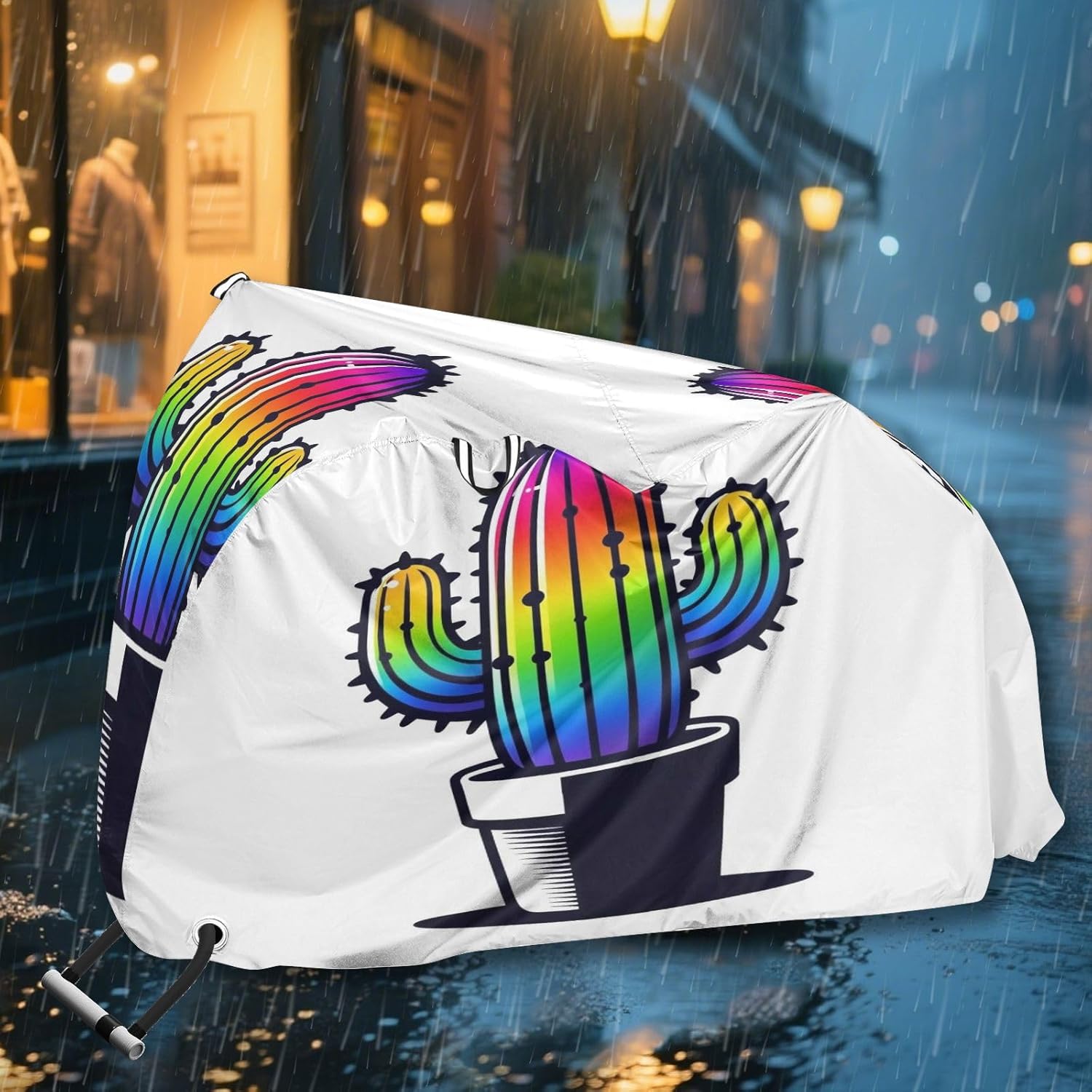 Protect your bicycle in style with our premium bike tarp, engineered for maximum defense against harsh elements. Unlike basic covers, we use specially engineered umbrella waterproof fabric - the same advanced material used in high-end rain umbrellas - delivering superior performance with unique visual appeal. Sun & Heat Defense Our fabric creates a physical cooling barrier that actively lowers your bike's temperature by: Blocking 95%+ harmful UV rays to prevent paint fading Providing exceptional shading & heat insulation (up to 20℉/11℃ reduction vs direct sun) Offering SPF 50+ equivalent protection for sensitive components Rain & Dust Protection Water-repellent coating causes rain to bead and roll off Tightly woven fabric acts as dustproof barrier for long-term storage Prevents moisture buildup with breathable side panels (prevents condensation) User-Focused Design LOCK ACCESS HOLE at front wheel enables secure locking without removing cover ADJUSTABLE BUCKLE STRAP at rear wheel anchors cover during strong winds Reflective safety strips on handles enhance nighttime visibility Ultra-lightweight (23 oz) folds into included pouch Unbeatable Aesthetics Choose from over 1,000 designer patterns - from sleek geometrics to vibrant nature motifs - transforming your bike into a street-style statement while competitors offer only solid colors.