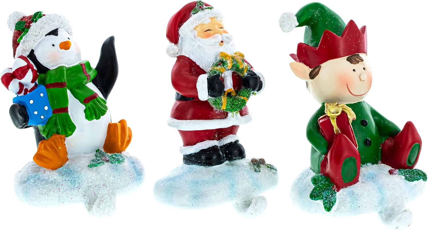 -Penguin 6.1 Inches Tall x 3.4 Inches Wide x 3.3 Inches Long -Santa 5.8 Inches Tall x 3.1 Inches Wide x 3.1 Inches Long -Elf 6.3 Inches Tall x 3.4 Inches Wide x 3.6 Inches Long -Resin -Hand Painted -Designed in the USA These charming stocking holders set consist of 3 heavyweight hand-painted figurines: -Festive Snowman with Candy -Penguin holding the birdhouse -Cheerful Reindeer with the wreath Christmas holders are a great way to show off your Christmas spirit. From hand-painted designs to personalized messages, Christmas holders are the perfect way to add a festive touch to your home. Christmas holders can be used for a variety of purposes, from holding Christmas cards to displaying Christmas decorations. They can also be used as a Christmas gift for friends and family. This holder are the part of our Christmas Stockings and Holders decoration. Collect them all to create a warm holiday atmosphere.
