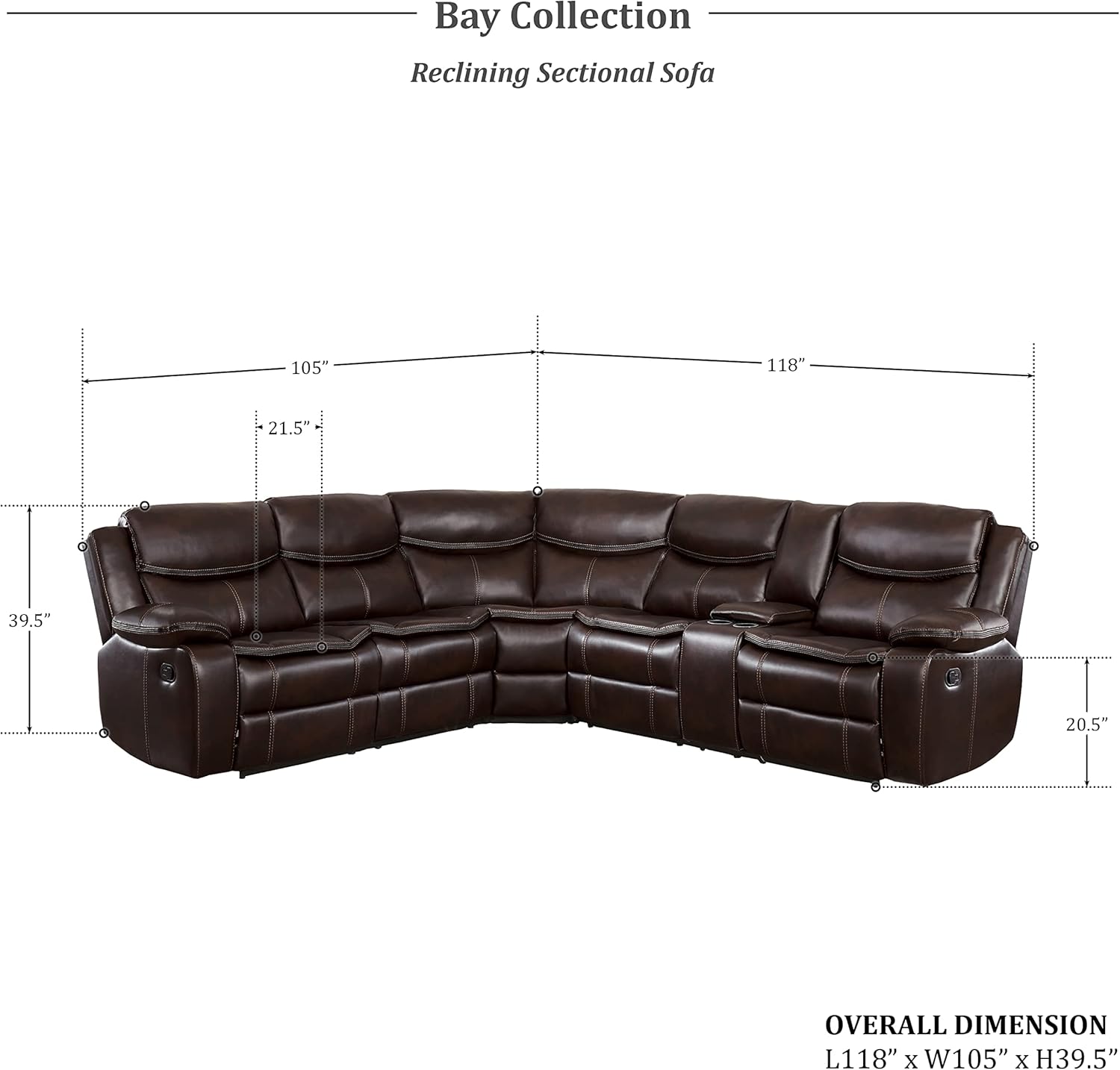Elevate your living room with our Bay Collection. A dark brown premium faux leather covers its wooden frame, while the foam boxed pocket coil cushion provides a just right support and comfort. This modular sectional sofa will be a perfect addition to your living space.