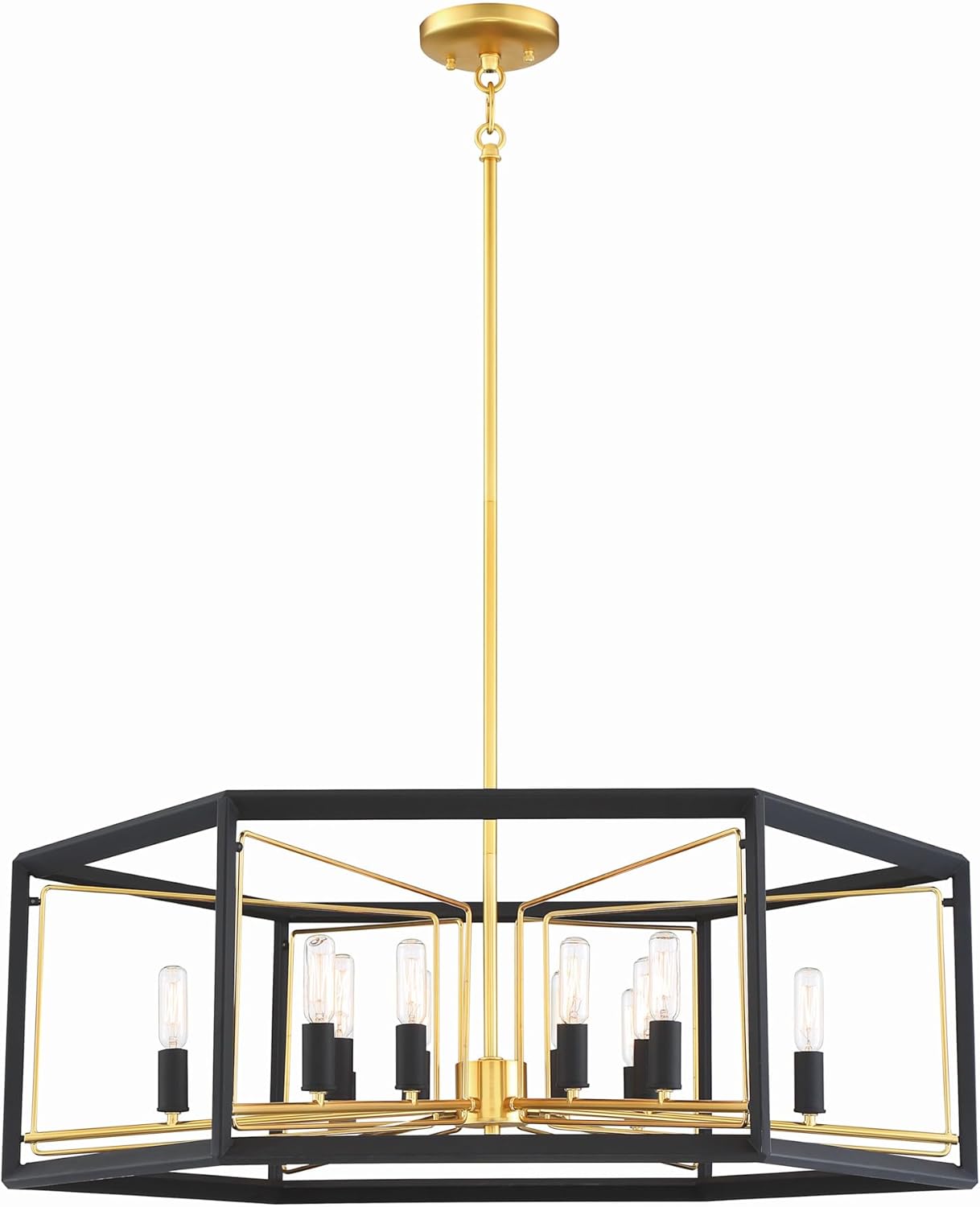 Collection: Sable Point, Material: Steel, Finish Color: Sand Black/Honey Gold, Width: 26", Height: 20", Length: 26", Chain Length: 25", Lamping Type: Incandescent, Number Of Bulbs: 12, Wattage: 60 Watts, Dimmable: Yes, Moisture Rating: Damp Rated, Desc: Modern design combined with multiple finishes and distinctive light clusters make a unique and innovative statement.,