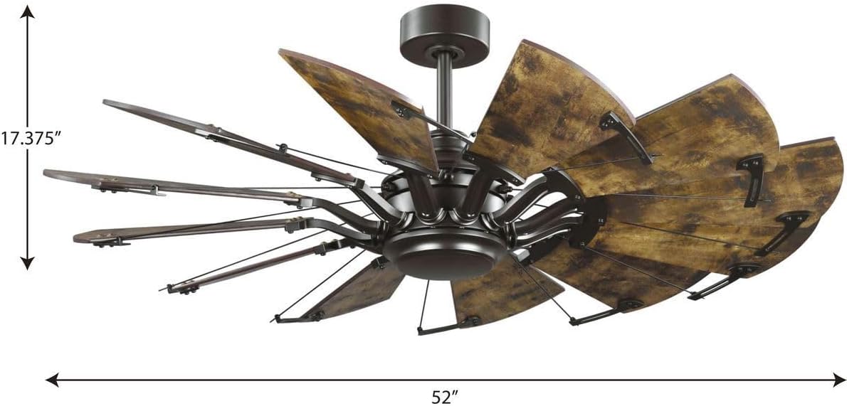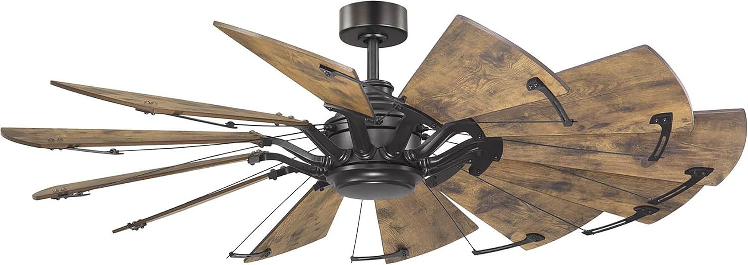 Relax under the refreshing breeze of the Springer Collection 52-Inch 12-Blades Distressed Walnut DC Motor Farmhouse Windmill Ceiling Fan ideal for any great room, bedroom, living room, or bonus room. Perfect for farmhouse, rustic, and coastal style settings. Ideal for boosting airflow in smaller spaces. 12 sweeping blades are coated in a distressed walnut finish for rustic flair.