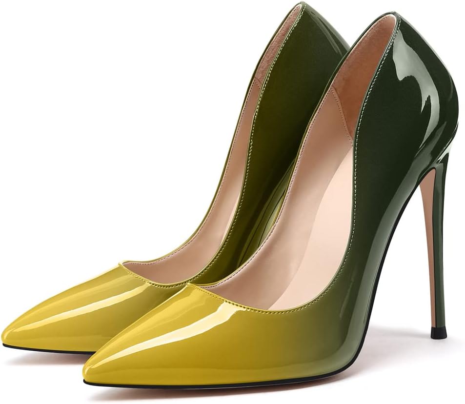 Gradient High Heels Details Sole material: rubber Outer material: synthetic Toe style: pointed toe Heel style: stiletto high heel Heel Height: 4.7" inches/12cm Wear Method: slip on Size: 5-13 Production method: handmade If you have other details or material requirements, please tell us. We will reply to all messages within 24 hours.